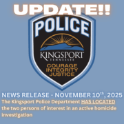 SUBJECT: UPDATE #2 – Kingsport Police Department Arrests Two in Connection to Homicide